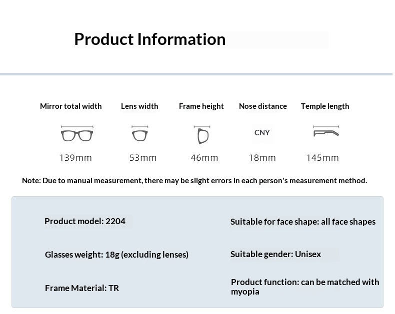 Frame Colors: Black-silver frame, black frame, gray-silver frame, black-gold frame