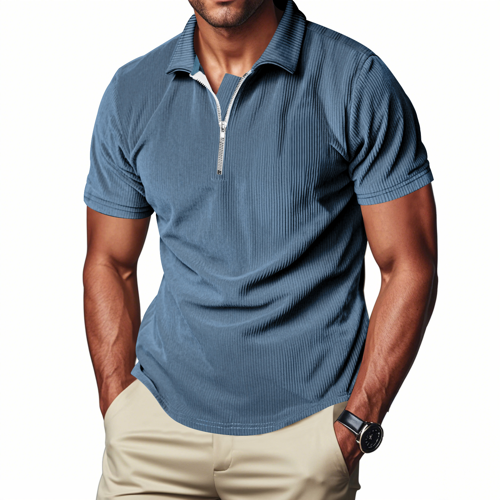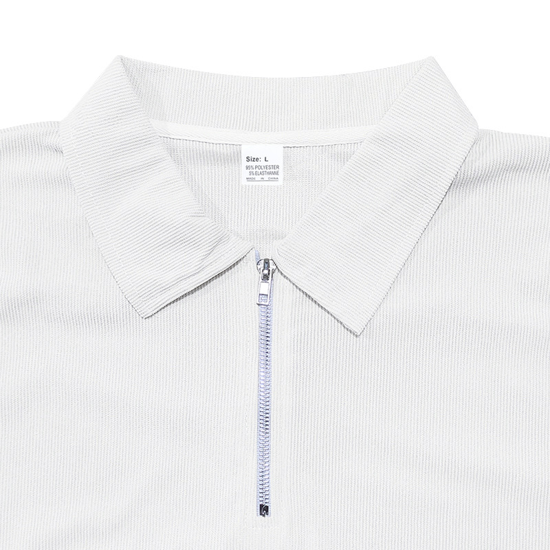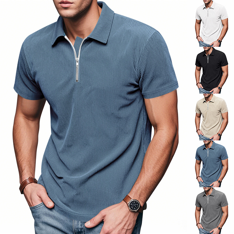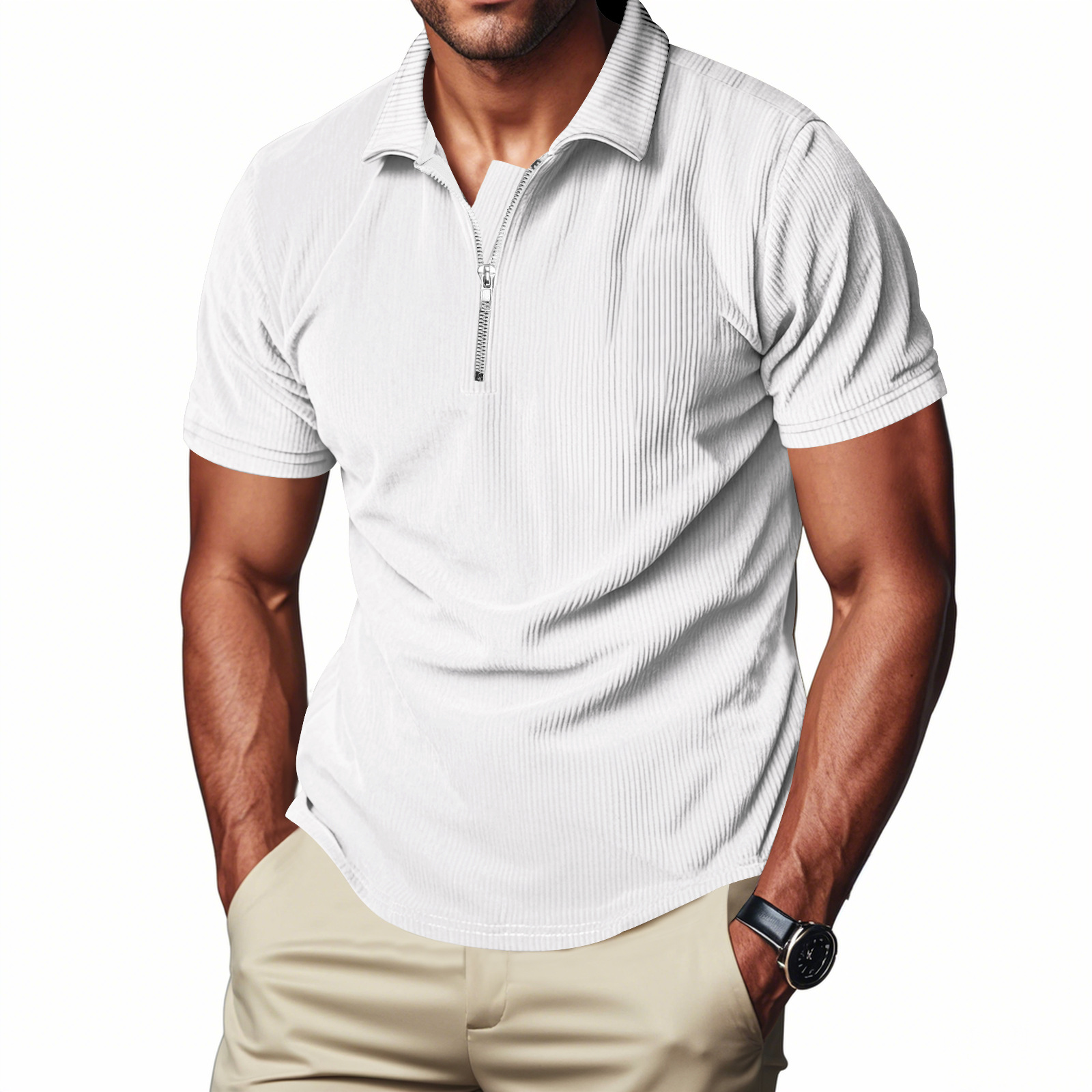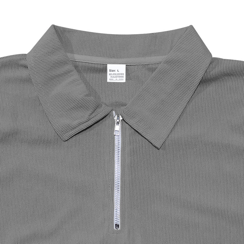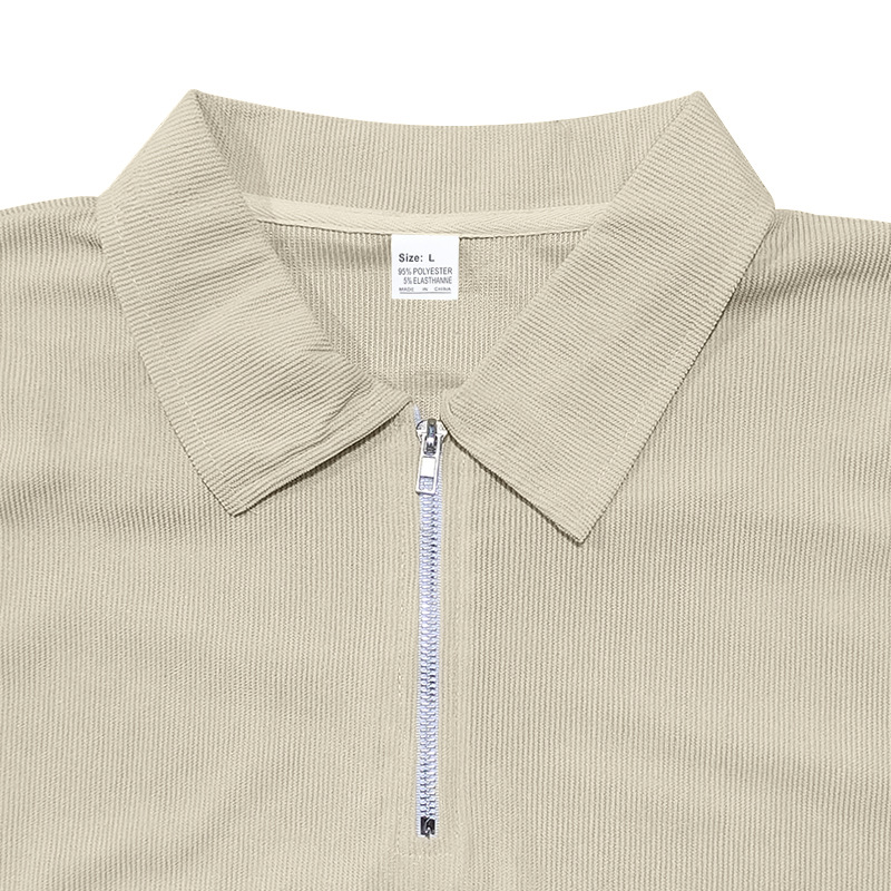 Mens Loose Corduroy Half-Zip Polo Short-Sleeve T-Shirt