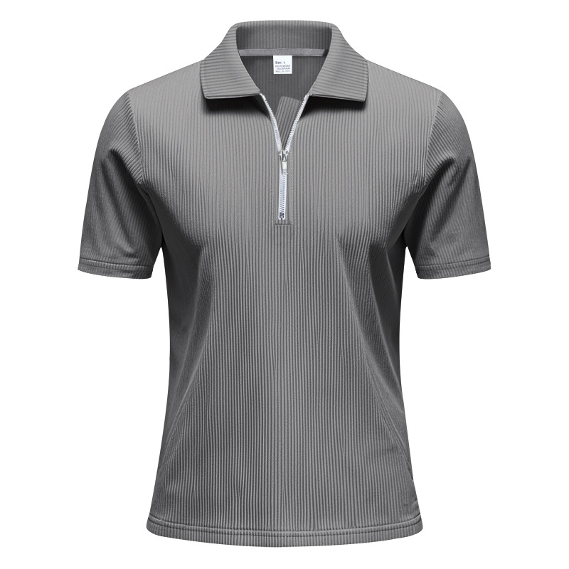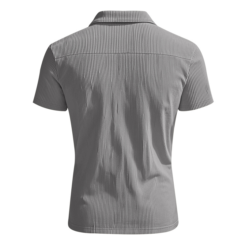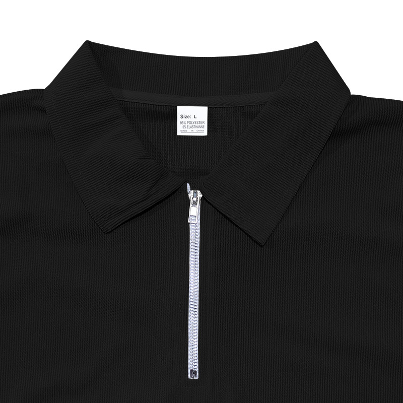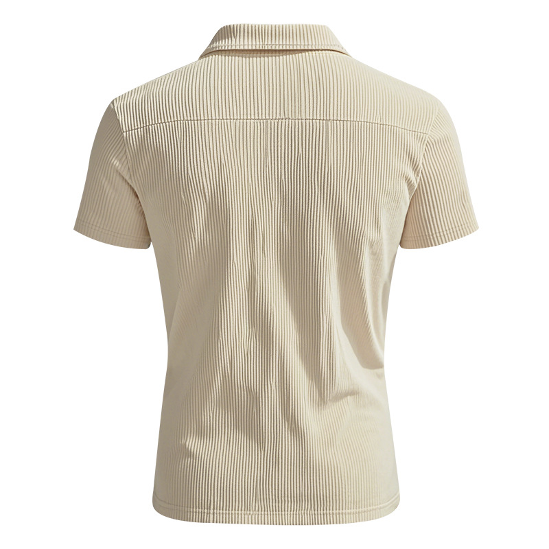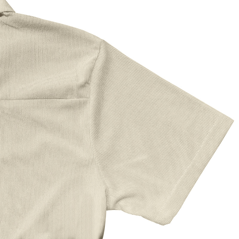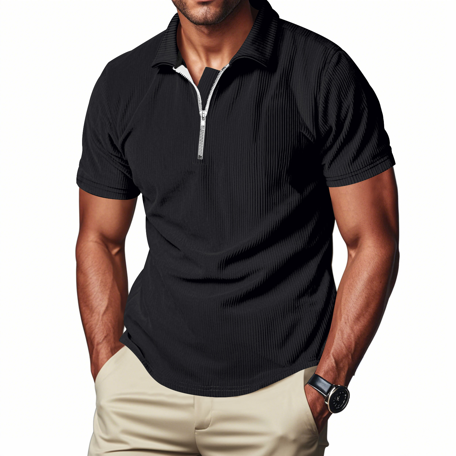 Mens Loose Corduroy Half-Zip Polo Short-Sleeve T-Shirt