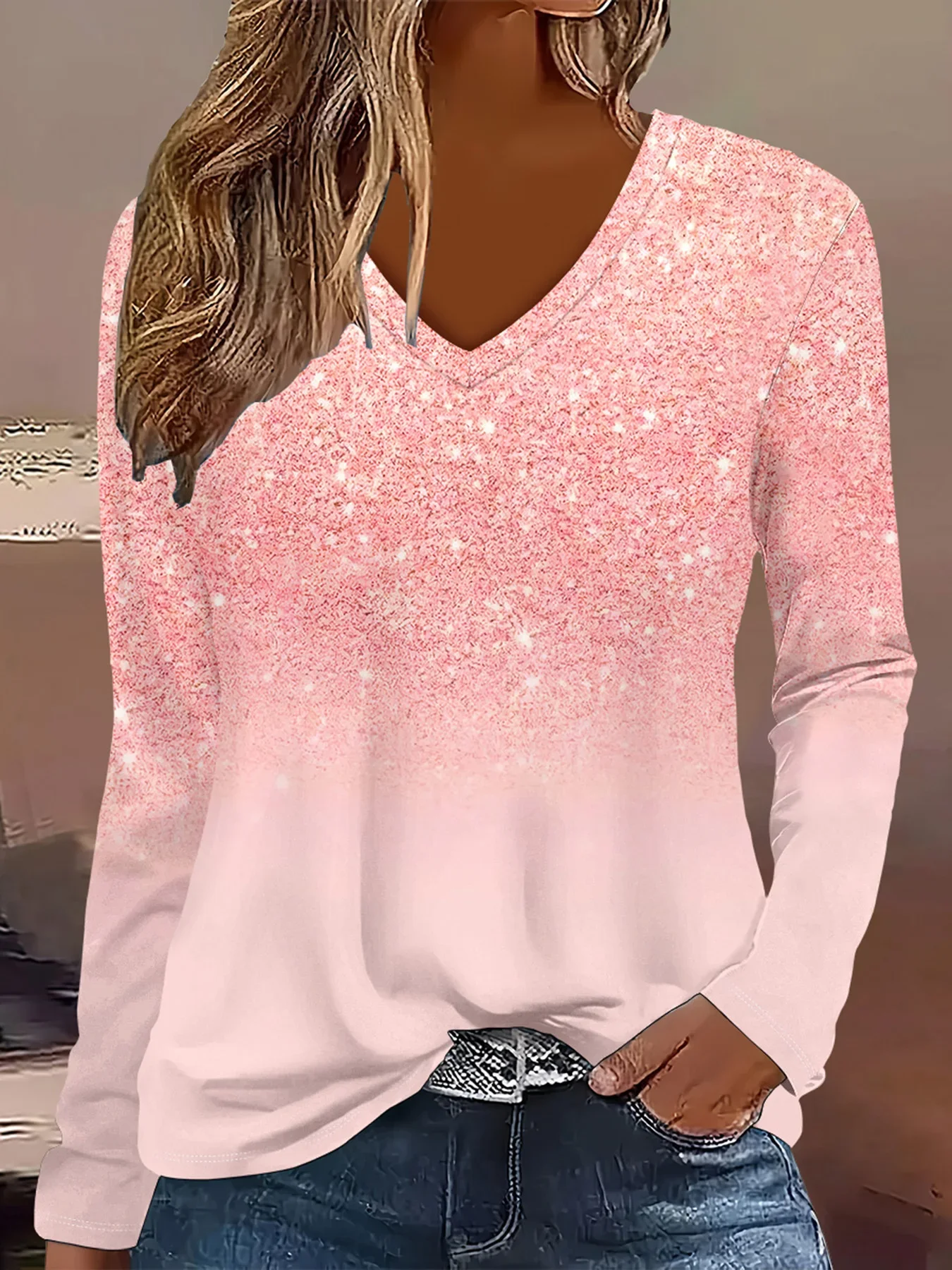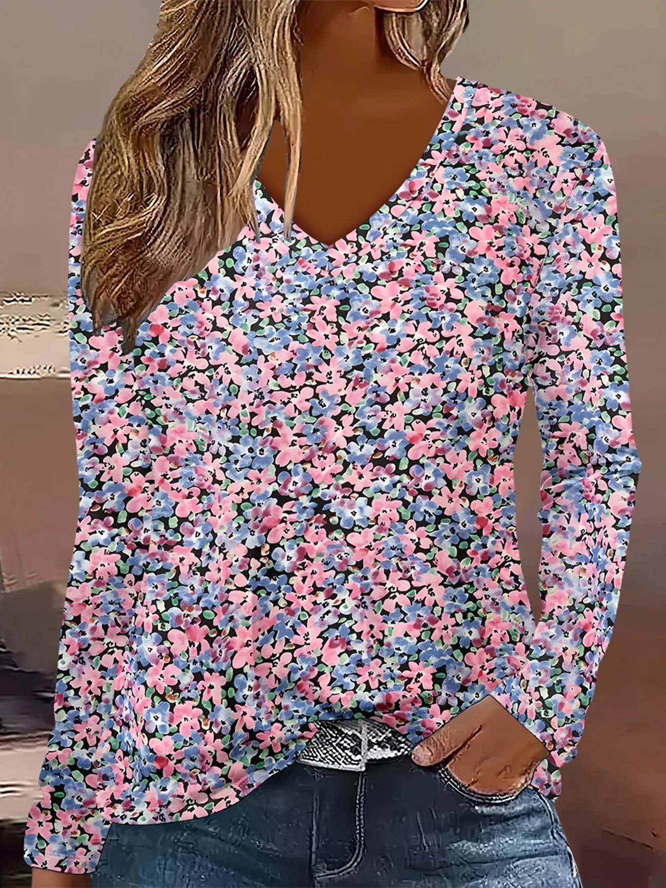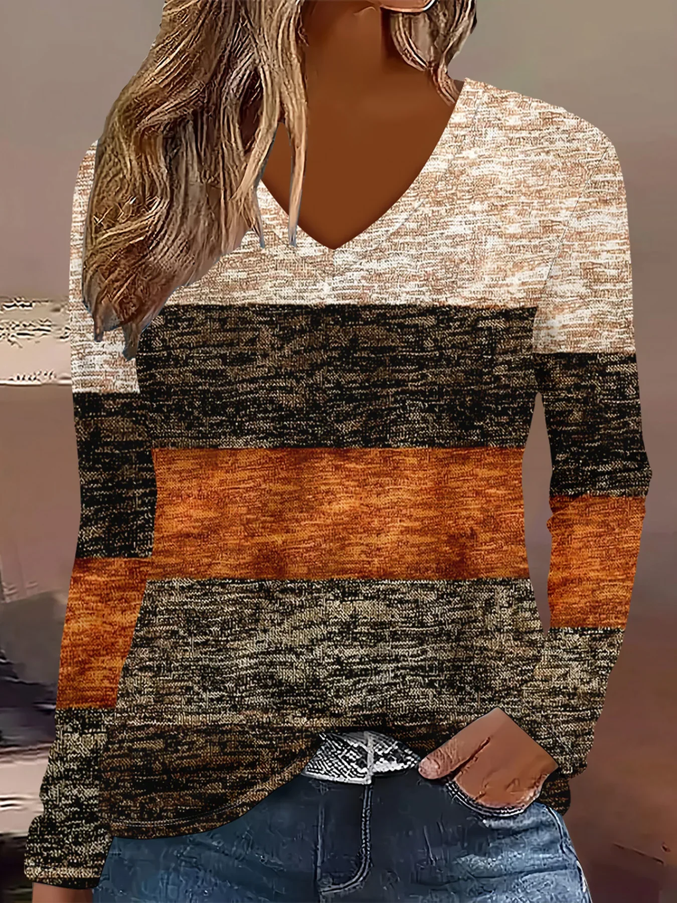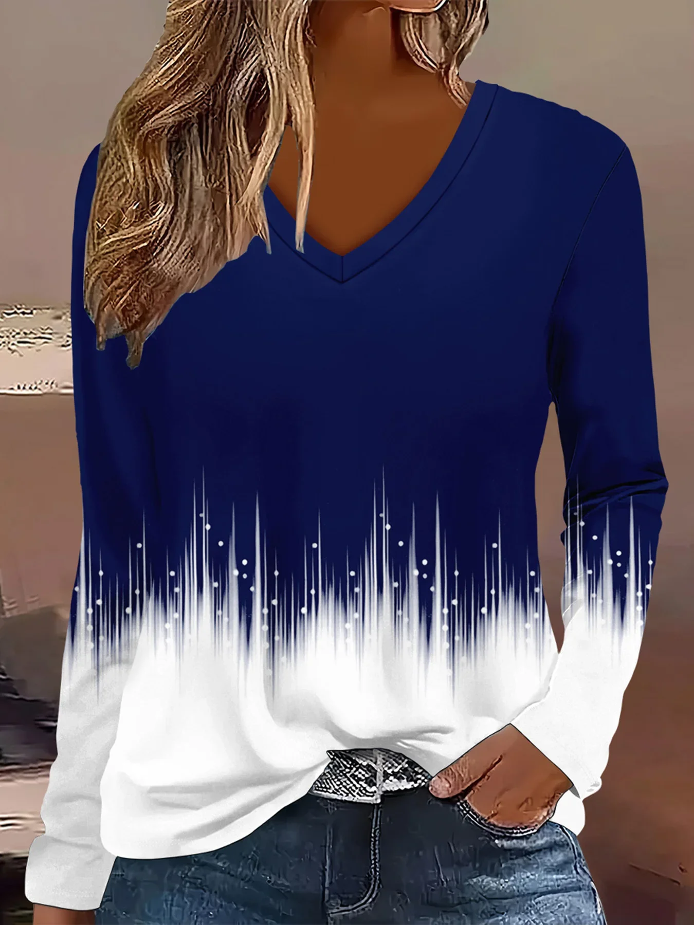 Summer Womens Casual Long-Sleeve Printed Top